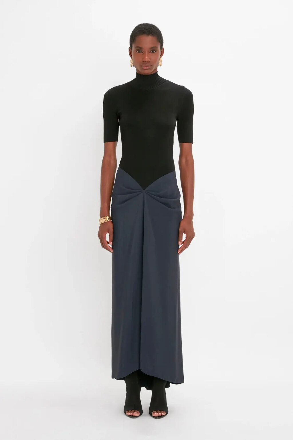 Polo Neck Gathered Dress In Midnight